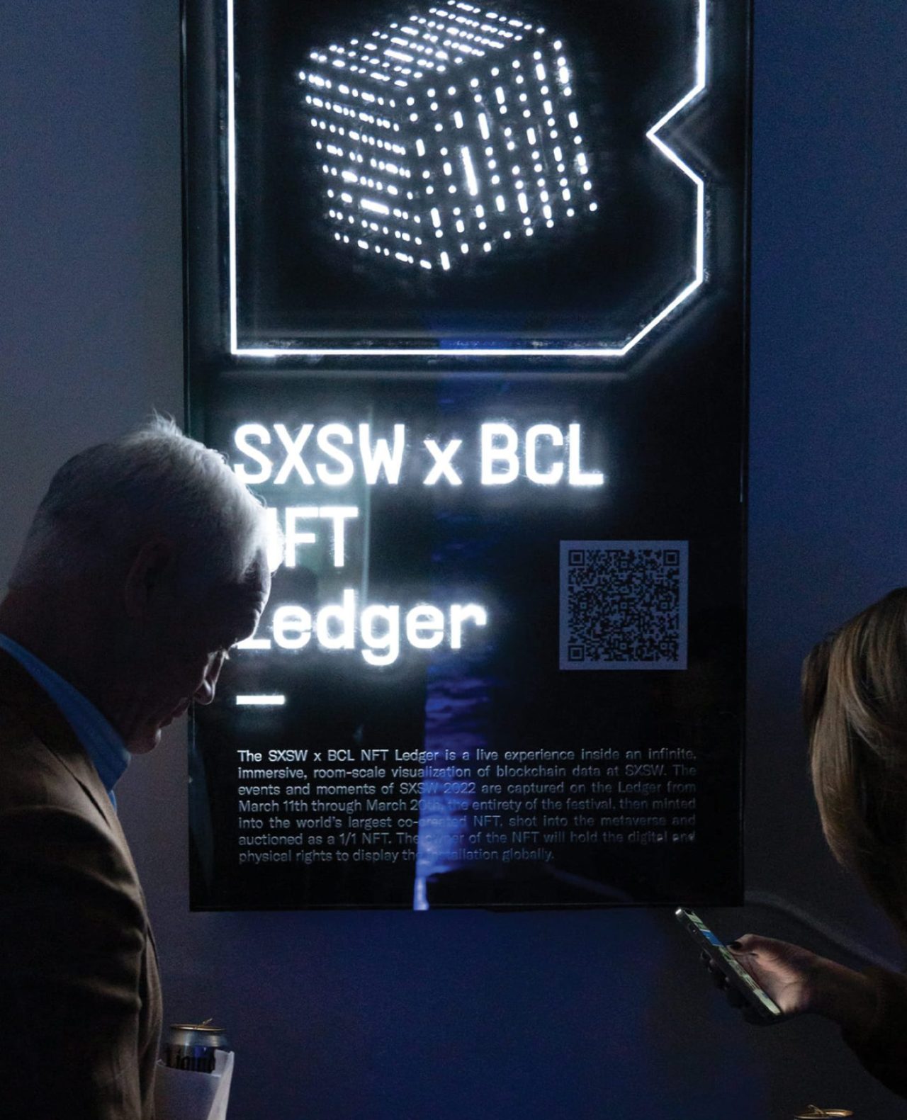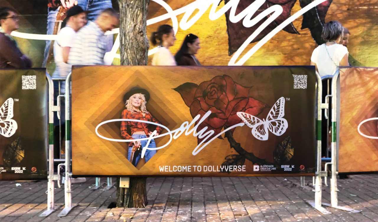 Whatever.co teamed up with KUDOS and a large cohort of producers to launch the BCL brand at the SXSW festival in March, 2022, in Austin, Texas. KUDOS was put in charge of creating a new visual branding system for BCL that was then applied to all aspects of the BCL House venue at SXSW. This included everything from a logo to a Web3-inspired website, lenticular badges, event posters, wayfinding graphics, animated POAP NFTs, Dolly Parton’s Dollyverse, and letterpress cards for the exclusive gala dinner—all aimed at delivering an immersive experience that spotlighted FOX’s new foray into the world of blockchain.